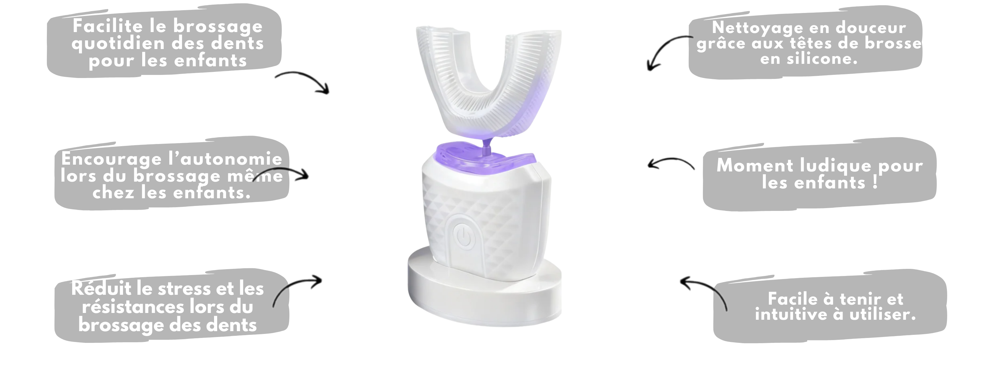 La brosse en forme de U facilite le brossage, surtout pour les enfants qui ont du mal à rester immobiles. Certains parents utilisent également la tête de brosse classique pour un nettoyage plus approfondi. L’association des deux offre les meilleurs résultats.